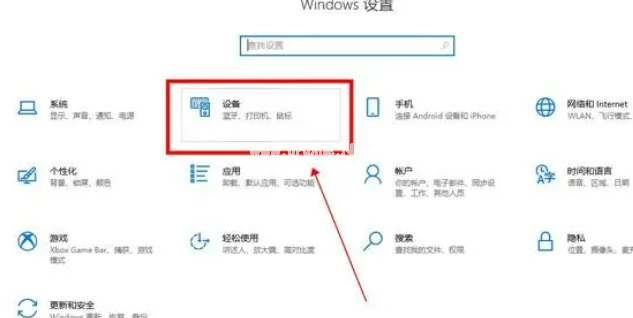 2、在Windows設置窗口中,找到并點擊“設備”;