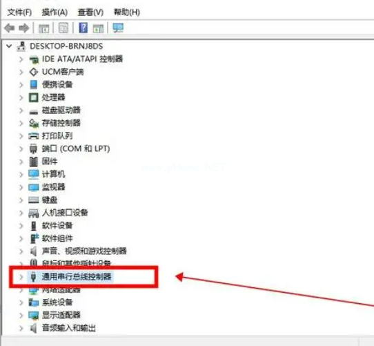 2、在設備管理器窗口中,找到并點擊“通用串行總線控制器”;