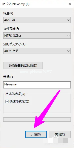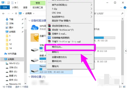 鼠標(biāo)左鍵選中Newsmy,單擊右鍵,選擇格式化。