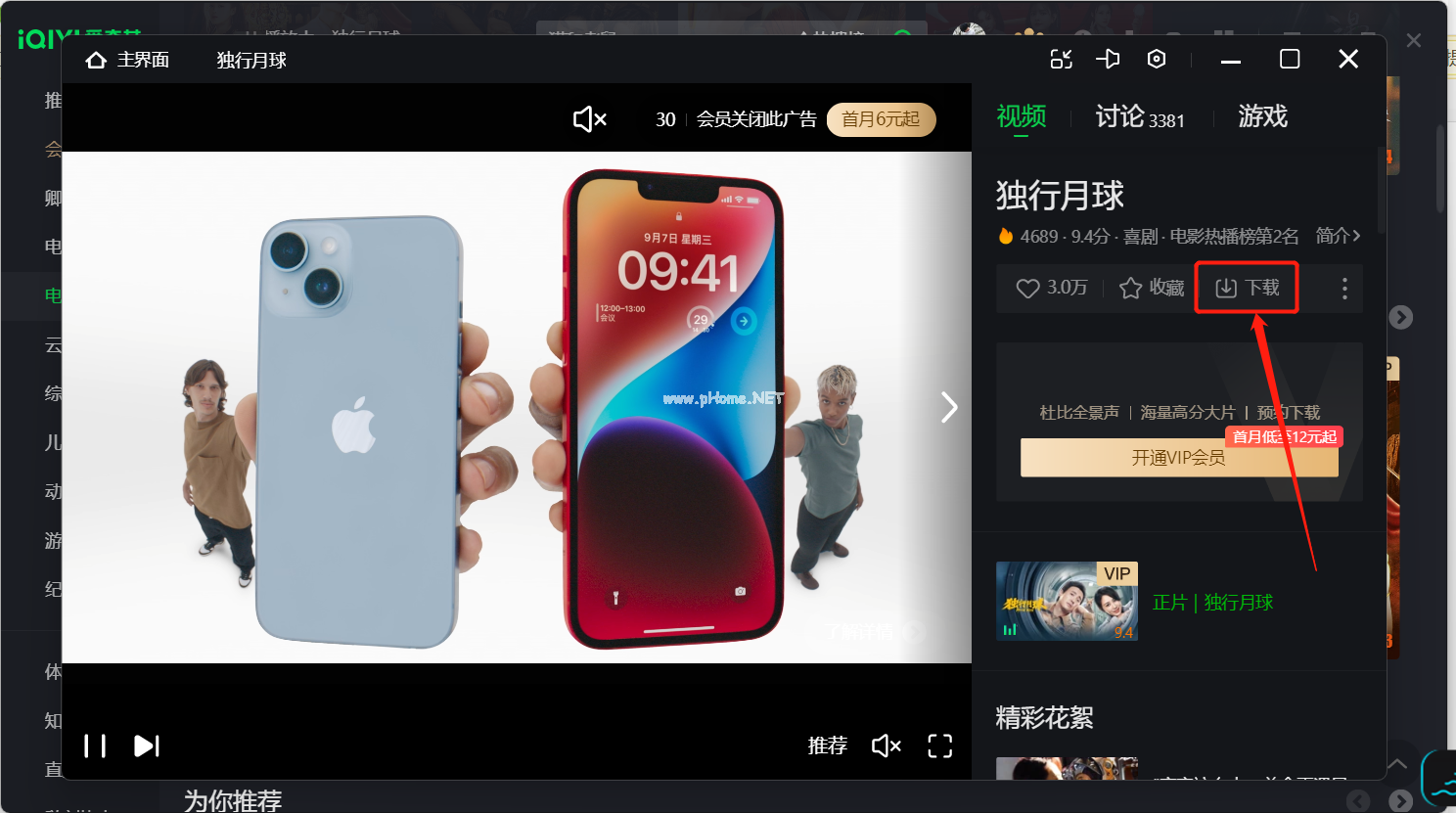 2、打開愛奇藝軟件,選擇一個(gè)喜歡的電影,然后點(diǎn)擊下載。