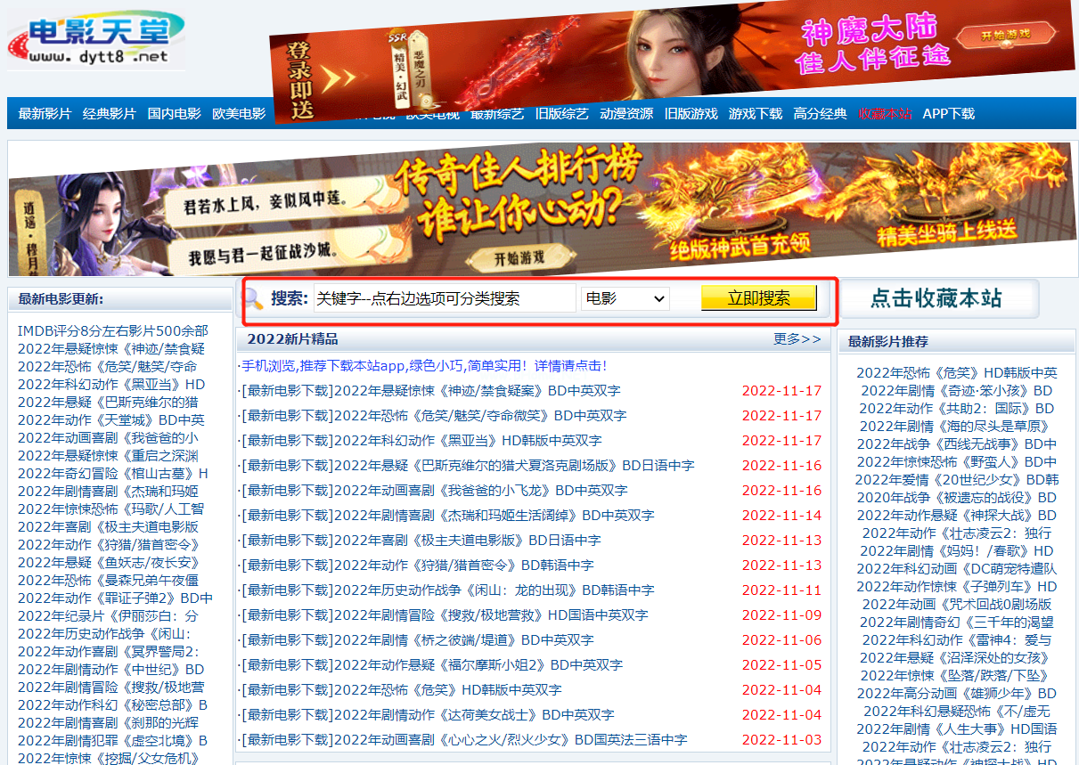 2、進(jìn)入電影天堂后在搜索欄輸入想要下載的電影。