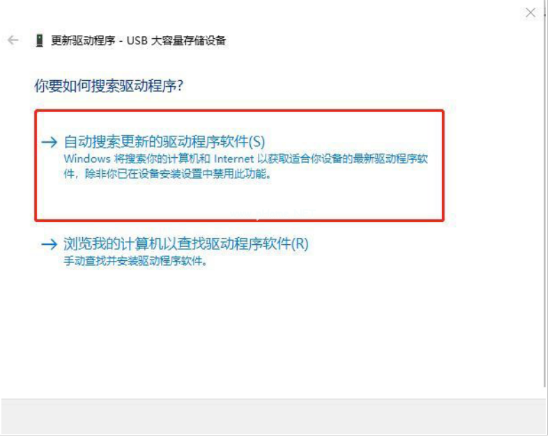 3、選擇“自動(dòng)搜索更新的驅(qū)動(dòng)程序軟件”,按照指引進(jìn)行下一步操作。