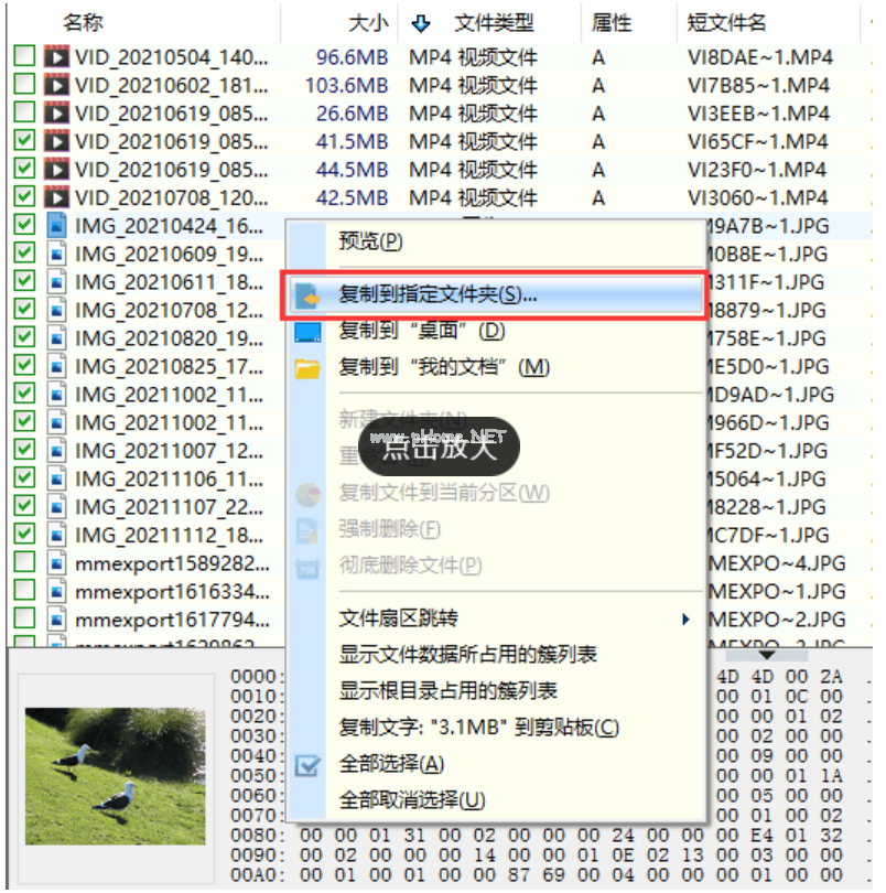 4、勾選需要恢復的文件,右鍵點擊選擇“復制到指定文件夾”。