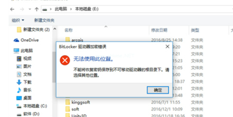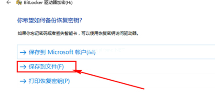 4、選擇保存到文件。要注意的是,不能把恢復(fù)密鑰保存在非移動(dòng)驅(qū)動(dòng)器的根目錄下,也不能保存在已加密的移動(dòng)磁盤中。