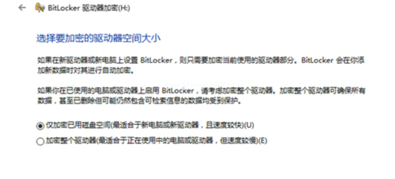 3、選擇要加密的驅(qū)動(dòng)器空間大小,根據(jù)提示按自己的需求選擇即可。