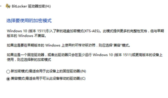 6、選擇要使用的加密模式,移動(dòng)U盤加密,兼容模式即可。