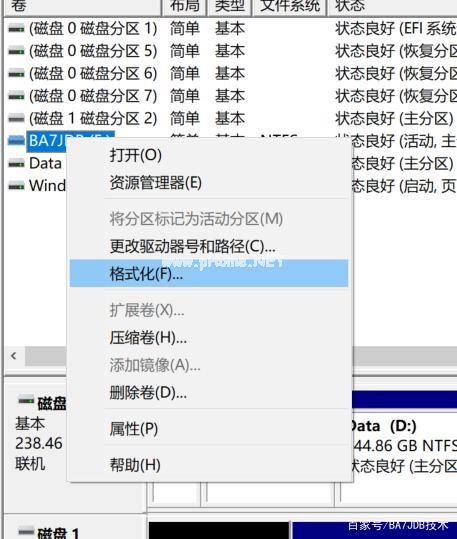 方法二:進(jìn)入磁盤管理進(jìn)行格式化