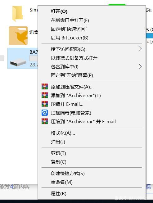 1、u盤怎么恢復(fù)出廠設(shè)置呢?插入U盤到電腦上,點擊雙擊打開此電腦,如果我們要格式化E盤,鼠標(biāo)右鍵選擇BA7JDB(E:)盤。