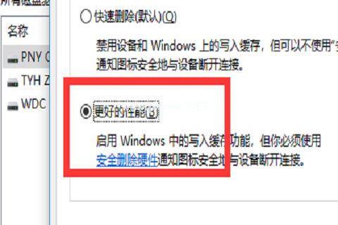 1、進入更好的性能勾選啟用設(shè)備上的寫入緩存選項;