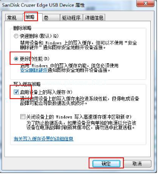 方法一:進入更好的性能勾選啟用設(shè)備上的寫入緩存選項