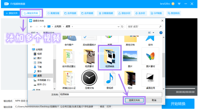 若需處理多個視頻時,可點擊“添加文件夾”。