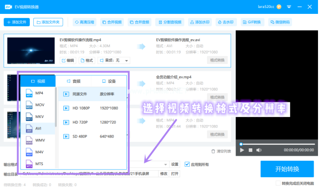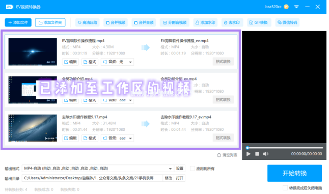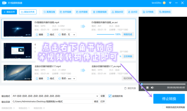 點擊右下角開始轉換,等待視頻轉碼完成即可。