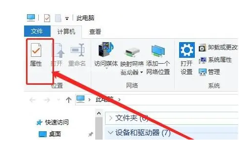 1、將U盤接入電腦之后,打開此電腦,點(diǎn)擊左上角“屬性”;