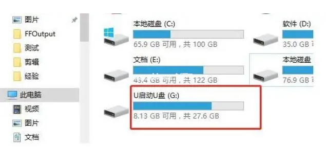 6、最后我們重新插入U(xiǎn)盤,等待掃描完成,就會發(fā)現(xiàn)電腦可以成功顯示U盤并讀取了。