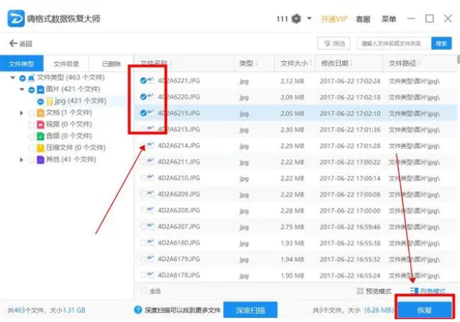 3、掃描結(jié)束后,可以按照文件路徑和類(lèi)型勾選要恢復(fù)的文件,點(diǎn)擊下方恢復(fù)選項(xiàng)即可找回丟失文件。