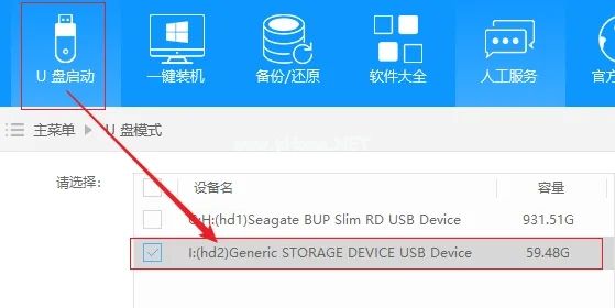 5、選擇移動設(shè)備,本例中使用64G的是閃迪U盤。