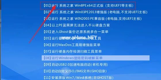 5.設(shè)置成功后再次重啟電腦,自動進入U盤PE菜單,選擇第一項進入其中。