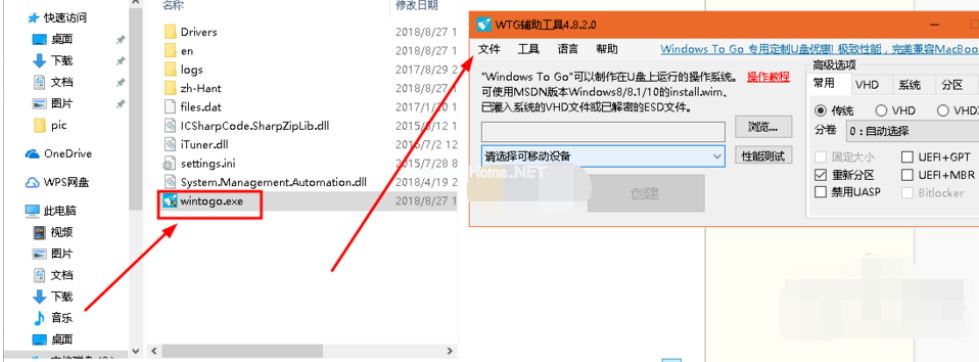 3、點擊打開下載好的WTG輔助工具,運行wintogo.exe程序: