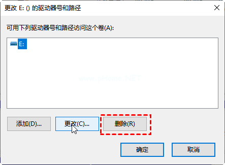 3. 在彈出的更改驅(qū)動(dòng)器號(hào)和路徑的窗口界面中,選擇“刪除”。