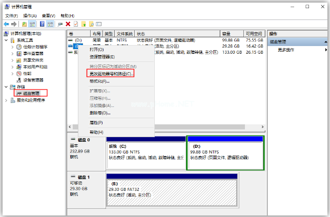 1、這個(gè)方法可以修復(fù)解決大部分u盤(pán)不讀取的問(wèn)題。首先打開(kāi)電腦的「計(jì)算機(jī)管理」界面,在右側(cè)「存儲(chǔ)」-「磁盤(pán)管理」,接著找到「可移動(dòng)磁盤(pán)」,并點(diǎn)擊選擇「更改驅(qū)動(dòng)器號(hào)和路徑」。