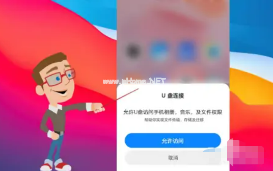 手機(jī)會(huì)自動(dòng)彈窗,選擇把手機(jī)的文件遷移至U盤;