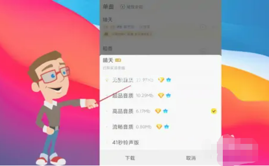選擇音樂的音質(zhì),一般內(nèi)存越大,音質(zhì)會(huì)越好,可以根據(jù)自己的需求選擇下載;