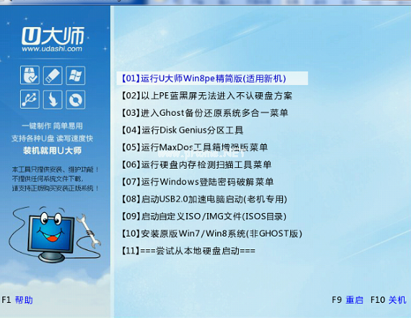 5、如果出現(xiàn)下圖中的界面,U大師U盤啟動(dòng)制作工具啟動(dòng)成功。