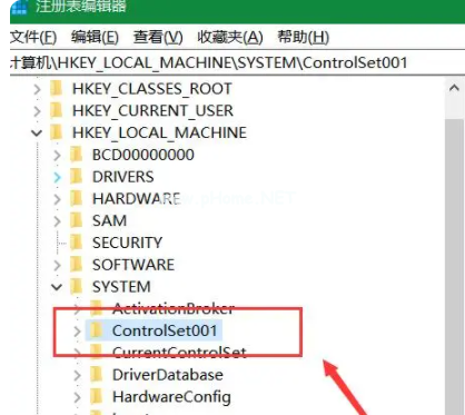 4.在注冊(cè)表編輯器找到HKEY_LOCAL_MACHINE\SYSTEM\ControlSet00X,其中X可以是任意數(shù)字。