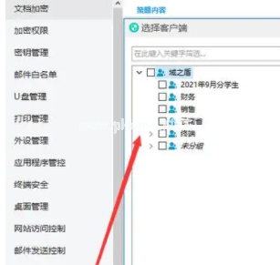 4.進(jìn)入到選擇客戶端的界面后,我們就可以對(duì)多個(gè)員工電腦或單獨(dú)某個(gè)部門(mén)員工電腦進(jìn)行選擇了,企業(yè)可根據(jù)想要查看員工電腦U盤(pán)使用進(jìn)行選擇。