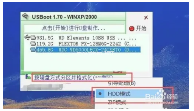 6.隨后在其“下拉列表”中選擇“HDD”模式,點擊“格式化“按鈕,此時即可完成U盤的修復(fù)操作。
