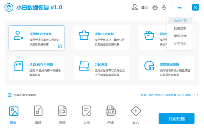 如果說以上的方法不能使用,找不回數(shù)據(jù)的話,這時一般都需要用到數(shù)據(jù)恢復軟件。這里以小白數(shù)據(jù)恢復軟件為例,具體如下: