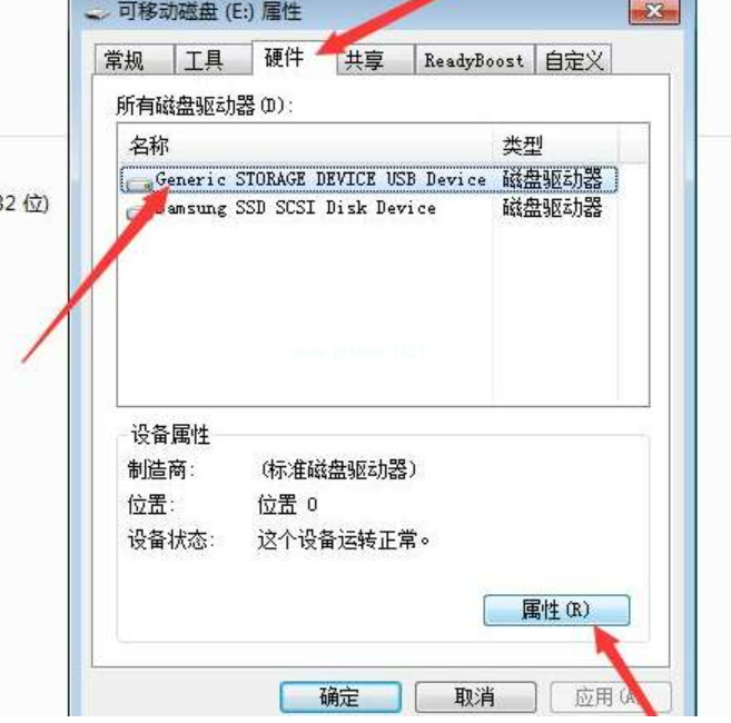 1、鼠標(biāo)雙擊計(jì)算機(jī),進(jìn)入頁(yè)面,選中u盤(pán)并右鍵單擊它,選擇屬性; 2、彈出窗口,切換到硬件選項(xiàng)欄,選擇帶usb字樣的磁盤(pán),單擊屬性;