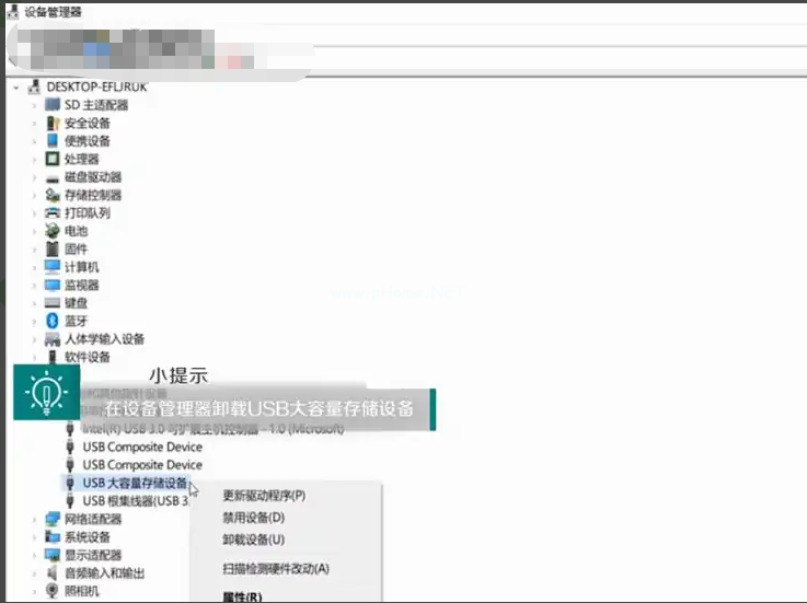2、卸載設(shè)備,重新插入U盤即可解決。