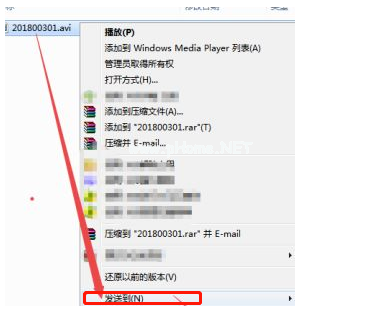 3、鼠標右鍵點擊需要發(fā)送到U盤中的視頻,點擊”發(fā)送到“。