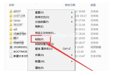 2、在打開的U盤界面中點擊”粘貼“即可將視頻發(fā)送U盤中。