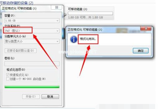 4、當(dāng)出現(xiàn)以上錯誤提示的時(shí)候,由于大面板壞道的產(chǎn)生,造成U盤可用容量減少,因此只能使用“Fat”文件系統(tǒng)來格式化U盤。