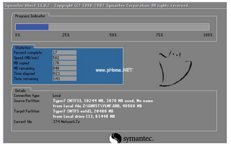 4、之后就會(huì)進(jìn)入磁盤格式化過程,這時(shí)只需要稍等片刻,之后會(huì)進(jìn)行win7鏡像安裝,只需要根據(jù)提示操作即可。