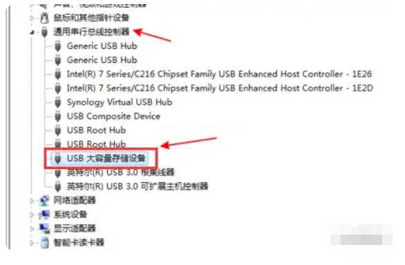 3.在設(shè)備列表中展開,點(diǎn)擊選擇“USB大容量存儲設(shè)備”;