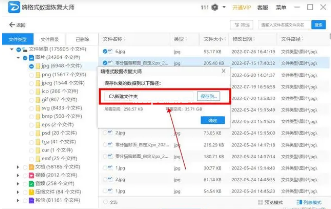 2、查看文件類型并選擇要恢復(fù)的文件。文件的查看可以在篩選框里面指定文件名搜索,或者在頁面左側(cè)點(diǎn)擊查看文件。你還可以鼠標(biāo)右鍵懸放在某一文件上方進(jìn)行預(yù)覽,就能看到它的詳細(xì)信息。確認(rèn)信息無誤,點(diǎn)擊“恢復(fù)”就可以了。
