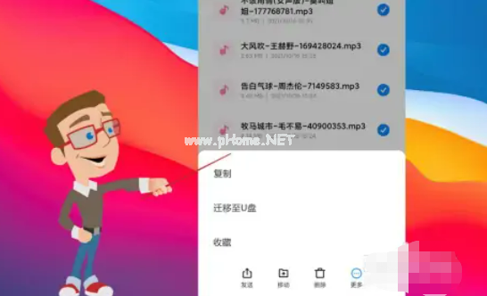 選擇遷移至U盤就可以,歌曲就會(huì)自動(dòng)復(fù)制到U盤上;