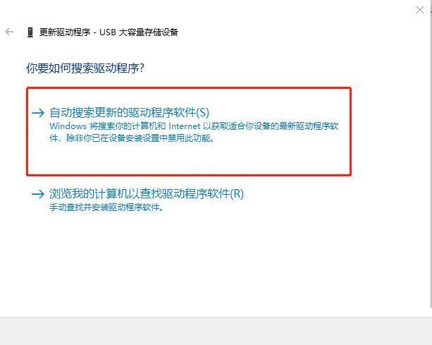 3、選擇“自動搜索更新的驅(qū)動程序軟件”,按照指引進(jìn)行下一步操作。