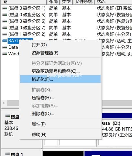 3、鼠標(biāo)右鍵選擇E盤(pán),選擇格式化(F)。