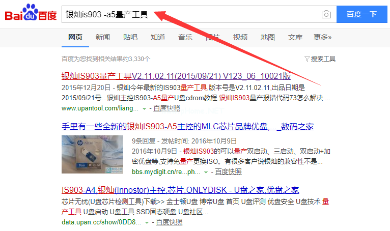 2、知道了你的U盤型號之后即可在網(wǎng)上根據(jù)你的U盤芯片型號下載對應的U盤量產(chǎn)工具了,根據(jù)U盤芯片型號搜索工具下載即可。