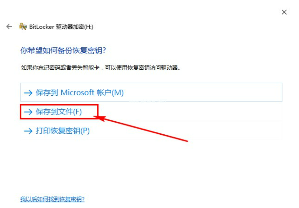 3、為了防止忘記密碼后打不開u盤,建議備份恢復(fù)鑰匙,選擇“保存文件”即可。這樣有助于不記得密碼的時(shí)候,可以使用這個(gè)密鑰重置密碼。