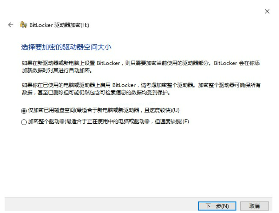 5、選擇要加密的驅(qū)動(dòng)器空間大小,根據(jù)提示按需求選擇。