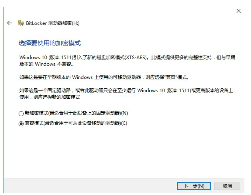 6、這里給移動(dòng)U盤加密選擇兼容模式。
