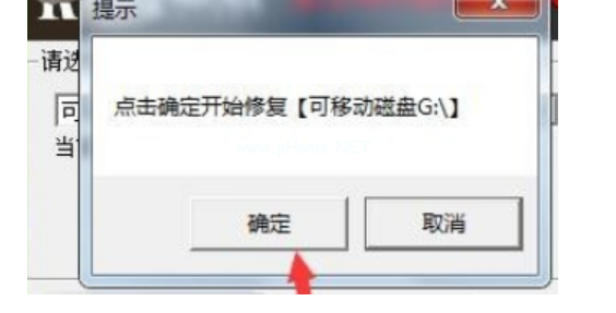 3、然后會(huì)出現(xiàn)提示窗口 點(diǎn)擊確定,金士頓U盤修復(fù)工具就會(huì)自動(dòng)開始修復(fù)U盤。