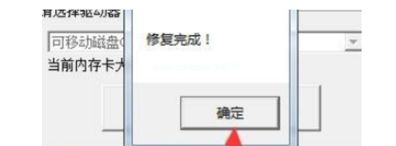 4、在完成之后工具會(huì)出現(xiàn)修復(fù)完成的提示,點(diǎn)擊確定,退出工具重新插拔一下U盤就可以正常使用。