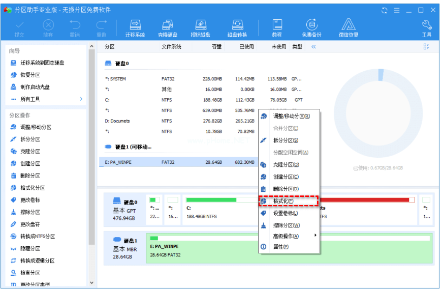 1、你可以點(diǎn)擊下方按鈕或進(jìn)入下載中心,下載安裝并打開傲梅分區(qū)助手,按照提示將U盤格式化。