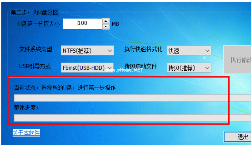 5、可以在下方的進(jìn)度讀條中查看U盤分區(qū)的進(jìn)度。